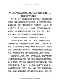 XX理工学院辅导员工作总结:脚踏实地干工作履职担当续初心.docx