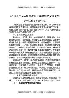 XX镇关于2025年度前三季度道路交通安全劝导工作的总结报告.docx