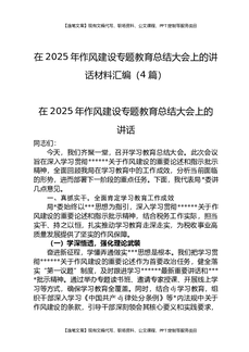 在2025年作风建设专题教育总结大会上的讲话材料汇编(4篇).docx