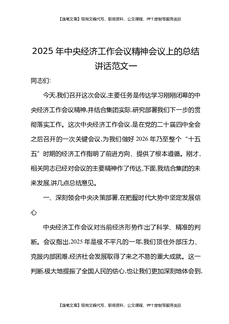 2025年中央经济工作会议精神会议上的总结讲话范文.docx
