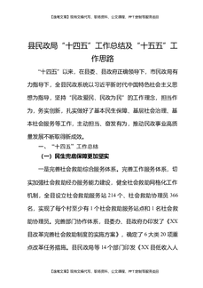 县民政局“十四五”工作总结及“十五五”工作思路.docx