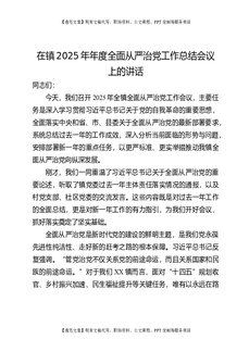 在镇2025年度全面从严治党工作总结会议上的讲话.docx