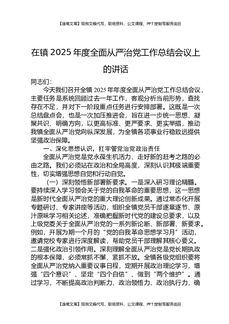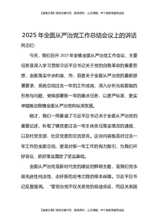 在镇2025年年度全面从严治党工作总结会议上的讲话.docx