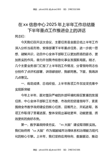 在XX信息中心2025年上半年工作总结暨下半年重点工作推进会上的讲话.docx