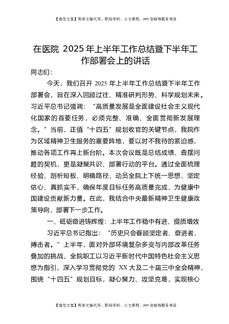 在医院2025年上半年工作总结暨下半年工作部署会上的讲话.docx