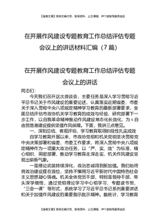 在开展作风建设专题教育工作总结评估专题会议上的讲话材料汇编(7篇).docx
