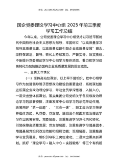 国企党委理论学习中心组2025年前三季度学习工作总结.docx