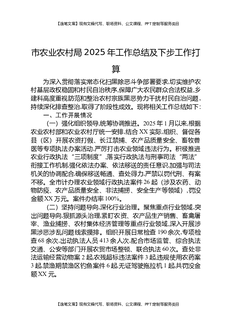 市农业农村局2025年工作总结及下步工作打算.docx