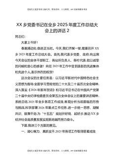 XX乡党委书记在全乡2025年度工作总结大会上的讲话2.docx