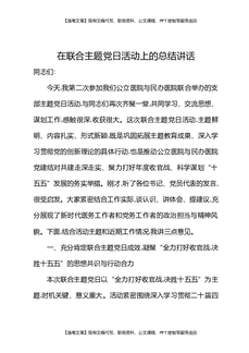 在联合主题党日活动上的总结讲话领导讲话稿.docx