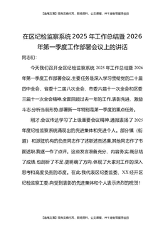 在区纪检监察系统2025年工作总结暨2026年第一季度工作部署会议上的讲话.docx