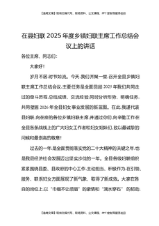 在县妇联2025年度乡镇妇联主席工作总结会议上的讲话.docx