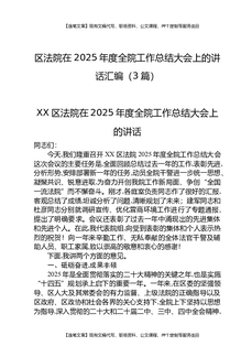 区法院在2025年度全院工作总结大会上的讲话汇编(3篇).docx