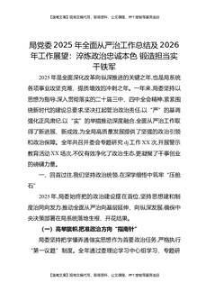 局党委2025年全面从严治党工作总结及2026年工作展望:淬炼政治忠诚本色,锻造担当实干铁军.docx
