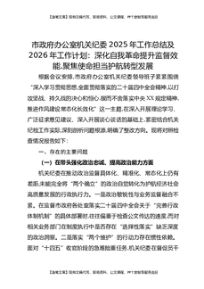 市政府办公室机关纪委2025年工作总结及2026年工作计划:深化自我革命提升监督效能,聚焦使命担当护航转型发展.docx