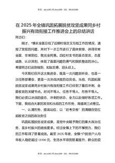 在2025年全镇巩固拓展脱贫攻坚成果同乡村振兴有效衔接工作推进会上的总结讲话.docx