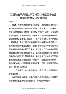 发展和改革局传达学习党的二十届四中全会精神专题会议总结讲话稿.docx