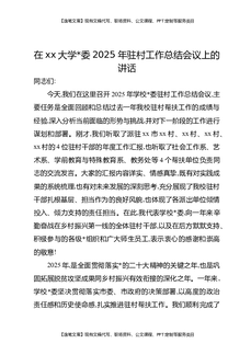在XX大学党委2025年驻村工作总结会议上的讲话.docx