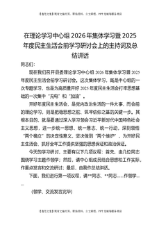 在理论学习中心组2026年集体学习暨2025年度民主生活会前学习研讨会上的主持词及总结讲话.docx