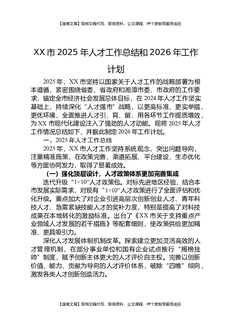 XX市2025年人才工作总结和2026年工作计划.docx