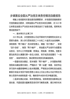 乡镇落实全面从严治党主体责任情况自查总结报告.docx