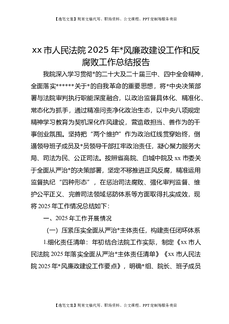 XX市人民法院2025年党风廉政建设工作和反腐败工作总结报告.docx