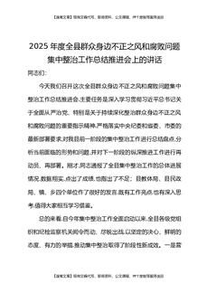 2025年度全县群众身边不正之风和腐败问题集中整治工作总结推进会上的讲话.docx