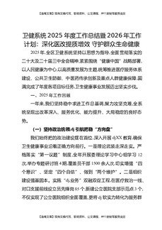 卫健系统2025年度工作总结暨2026年工作计划:深化医改提质增效,守护群众生命健康.docx