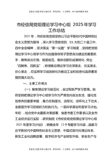 市经信局党组理论学习中心组2025年学习工作总结.docx