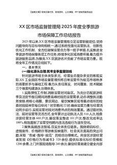 XX区市场监督管理局2025年度全季旅游市场保障工作总结报告.docx