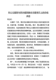 在公立医院与民办医院联合主题党日上的总结讲话.docx