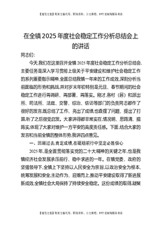 在全镇2025年度社会稳定工作分析总结会上的讲话.docx