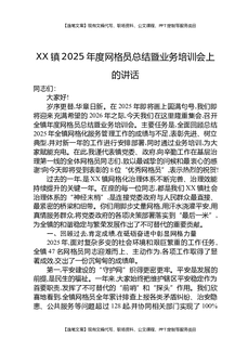 XX镇2025年度网格员总结暨业务培训会上的讲话.docx