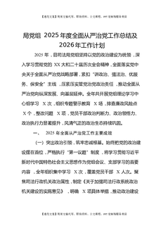 局党组2025年度全面从严治党工作总结及2026年工作计划.docx