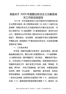 某县关于2025年度整治形式主义为基层减负工作的总结报告.docx