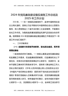 2024年党风廉政建设暨反腐败工作总结及2025年工作计划.docx
