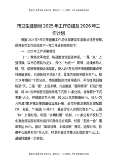 市卫生健康局2025年工作总结及2026年工作计划.docx