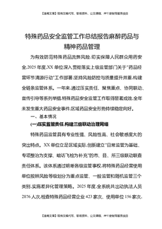 特殊药品安全监管工作总结报告麻醉药品与精神药品管理.docx