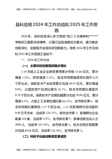 县科技局2024年工作总结和2025年工作思路计划.docx