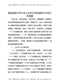 县经信局2024年上半年工作总结和下半年工作思路计划.docx