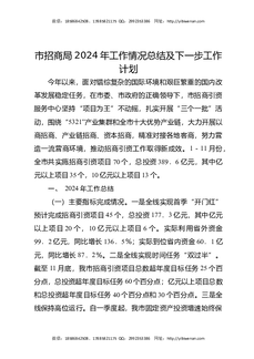 市招商局2024年工作情况总结及下一步工作计划.docx