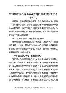 某县政府办公室2024年党风廉政建设工作总结报告.docx