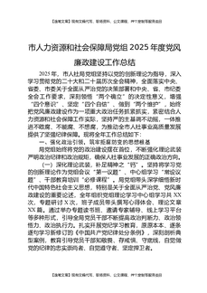 市人力资源和社会保障局党组2025年度党风廉政建设工作总结.docx