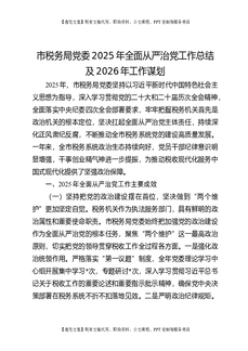 市税务局党委2025年全面从严治党工作总结及2026年工作谋划.docx