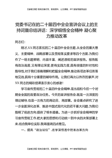 党委书记在党的二十届四中全会宣讲会议上的主持词暨总结讲话:深学细悟全会精神,凝心聚力推动改革.docx