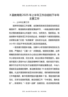 X县教育局2025年上半年工作总结和下半年主要工作.docx