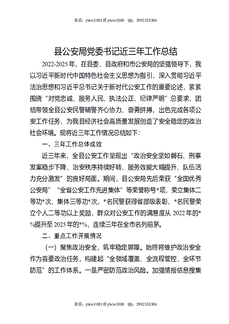 县公安局党委书记近三年工作总结.docx