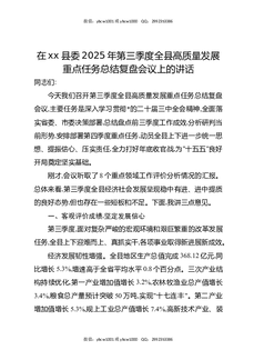 在XX县委2025年第三季度全县高质量发展重点任务总结复盘会议上的讲话.docx