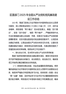 区直部门2025年全面从严治党和党风廉政建设工作总结.docx