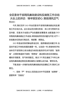 全区委老干部局党风廉政建设和反腐败工作总结大会上的讲话:铸牢银发初心,激扬清风正气.docx